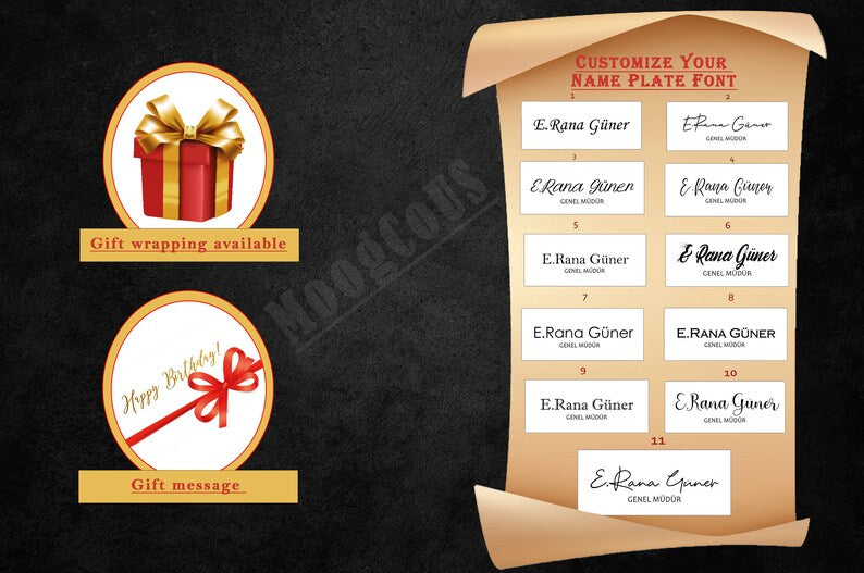 - Name Plate with Golden pen set - roller pen and fountain pen